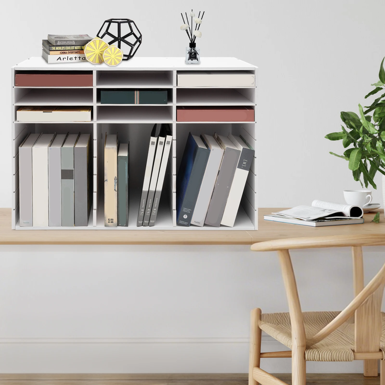 Are you still worried about the messy desktop? This literature organizer unlocks efficient storage aesthetics. With a pure white tone, it is not only a neat landscape in the office, but also an elegant decoration in the home space. Featuring 27 slots and a doorless design, it can easily handle A4 paper, magazines, receipts, and books, which can all be organized and clear at a glance. Make this literature organizer a powerful assistant for your efficient life, starting a clean and efficient day.
